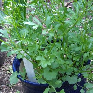 アラッ!アジサイの挿し芽をしていた鉢に、タネツケバナが立派に成長して、いつの間にか主役顔!