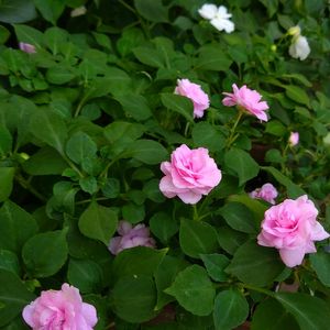 昨年の冬越しインパチェンスのピンク、今頃が一番 居心地が良さそう。