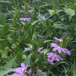 風に揺れるガウラの下で、昨年のファンフラワーが、いっぱい咲き始めています。 🏷愛しの紫