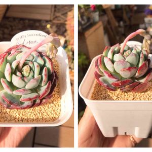 前回から同じ様なpicが暫く続きますが💦夏を乗り越えた記録_φ(・_・ ラウ030は遮光ネットから少し外れてたから日焼けさせちゃった😢 我が家の小さい方のピンクプリティ、葉挿しが簡単で幼稚園で増殖中❣️
