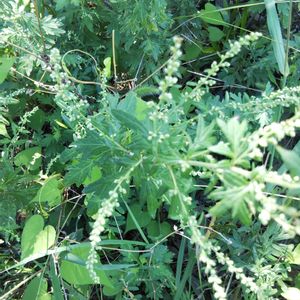 ヨモギの花発見! 初めて見た‼︎ あちこちで見かけるけれど いつも花が咲く前に刈られてしまって 見そびれていた。 なんだかちょっとシロザに似てる?