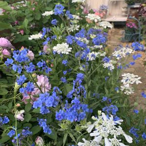 おはようございます☺️ 花友さんにいただいた種を秋にパラパラ蒔きしたシノグロッサムがいっぱい咲いてくれてます💙 多分、こぼれ種もあると思います☺️ 毎年、こぼれ種などで繋げられるのはいいですよねー❣️ オルレアといい感じです☺️ 素敵なお花の種をありがとうございました☺️