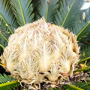 蘇轍(ソテツ)の花 Google cameraで🔍 見ていたら、イチョウとソテツは恐竜🦕時代からの 生きた化石と書かれていて、ソテツの精子が見つかったと記されていました。 龍福寺銀杏の側に 午後の散歩道