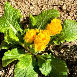 プリムラ ジュリアン 通り道のお宅の花壇に 午後の散歩道