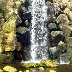 県庁の敷地内を散策 県庁敷地内の中庭 従業員食堂窓辺の滝 サザンカ(山茶花) 午後の散歩道