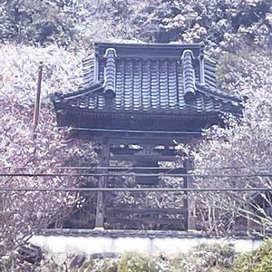 普門寺の鐘楼堂を9号線 歩道からスマホ撮影🤳 花の寺普門寺に似合う景色 雪が❄️桜の様に見えます 午後の散歩道