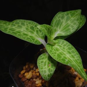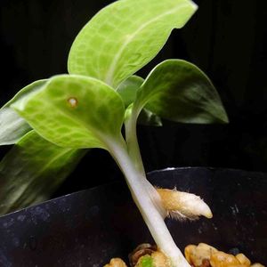 ミヤマウズラ(錦蘭) 白帝 珍しく日本の植物です。 ミヤマウズラは山野草ですが、和製ジュエルオーキッドと呼ばれる程独特な葉模様のものが多いみたいです。 この白帝には一目惚れでした。 優しい色合いの葉色に、ぼかしをかけたようにやわらかな葉脈。漂白したように真っ白な茎。 国外のジュエルオーキッドのようにギラギラしたものではなく、侘び寂びのような日本らしさを感じます。 でも名前はカッコいいんですよねー笑 最高です(*´ω`*)