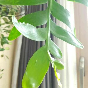 エピフィラム クリソカルディウム💕 6月にカーテンに吊してた子。 途中で覗いたらキッチンペーパーだと 根っこが張り付いて剥がす時に切れてしまって😅 少し水苔が残っていたので巻いたら 根が伸びてきた(*^o^*) 今日もカーテンにぶら下がってます(笑)