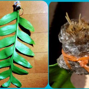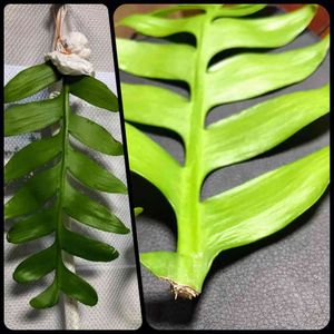 エピフィラム クリソカルディウム💕 キッチンペーパーを外したら 根っこが出て来てました。 ヤッタ~🎵 \(^o^)/ 6月10日に水挿しで切り口が腐って来たと投稿し 6月11日にキッチンペーパーに包んで輪ゴムで縛って カーテンにモンステラと一緒に洗濯ピンチでぶら下げた子✨