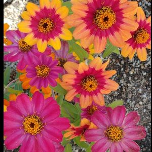 商業施設のプランターのお花🌼 とても種類が多いジニア🌼 百日草の名前の方が好きかなぁ😊
