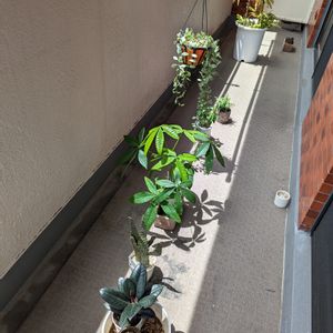 私の部屋の観葉植物たち 雨ばかりだと日光不足で部屋が薄暗くなるせいか ポトスが急成長なのはいいけれどあちこち伸びて暴れまくり😅 気持ち葉っぱもひょろ長くなったような‥。 鉢を背丈のあるものにして今度は蔓を切らないで下に垂らそうかしら そして存在感ありすぎのパキラの新芽 ゴムの木は2枚葉っぱが増えて次が成長中 外に出した多肉たち 棚作りをしていて 一番大きくなってきたエケベリアの鉢を落としてしまい 葉っぱが数枚もげました😱 せっかく成長したのに〜