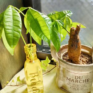 うちのパキラ、最近ビューンと仲間はずれ気味に伸びるようになったんやけど、これは正解なのかなぁ?🤔 元気に育ってくれて何よりやけど🤣笑