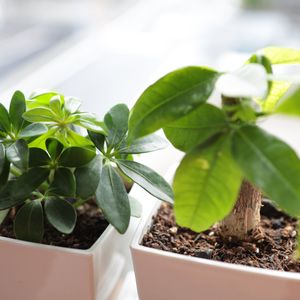DAISO産のパキラとカポックが根付いたようなので 会社に持ってきました 殺風景なオフィスに グリーンなコーナーができつつあります👍