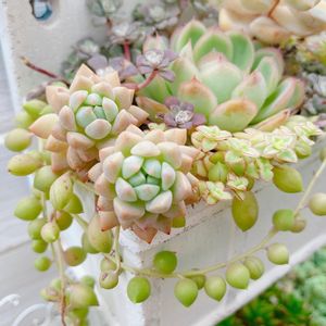寄せ植えって主役のエケベリアも もちろん華やかで可愛いけど 脇役のセダムやクラッスラが 良い引き立て役をやっているからこそ 可愛い寄せ植えになっているんですよね(*ˊᵕˋ* ) ようやく秋めいてきて これから益々可愛くなる季節がきましたね!楽しみです𓈒𓂂𓇬
