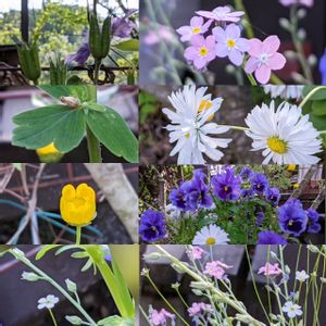 3月、コロナ禍で余ってしまった地域の自治会費で素敵な寄植えが配られました。随分楽しませて頂きましたが、オダマキは種鞘となり、全体の姿も少し乱れてきました。そこで数日前一つ一つをアップで。この先このまま一箇所に地植えするか、種を採るべきか迷っています。アドバイスがありましたらお願いしたいのですが…。🙏