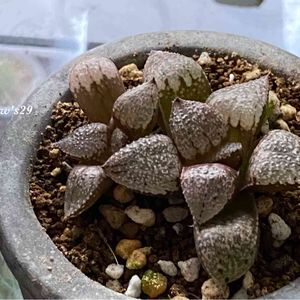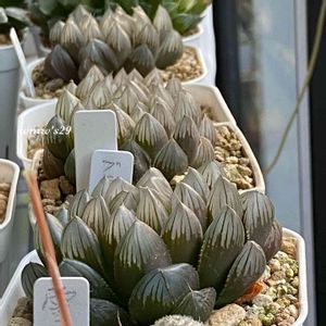 品種名って確認する時って波平さんの有無とか、葉先が丸いか尖ってるか…とか、勿論色味とか…容姿など総合してなんだろうけど。 以前の紫オブツーサは葉っぱが尖って透明度があって(葉っぱの半分は窓)。 このコは葉っぱが丸いのよね🙄 信頼ある生産者さんからお迎えなんだけど時々、悩む💭 ちなみに300円でお迎え💚