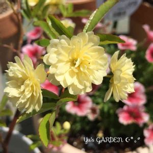 昨年りーちゃんから貰った モッコウバラを挿し木にしたら 根付いてくれて、お花まで咲かせてくれました。٩(๑ᵒ̴̶̷͈̀ ᗜ ᵒ̴̶̷͈́)و ̑̑ ✧イェ~ィ .:*♬ バラを育てるのは初めてなんだけど この子は確か丈夫だったはず よし!! 大きくするぞ•*¨*•.¸¸♬︎