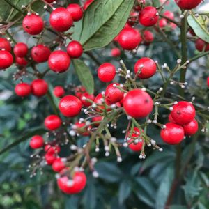 ナンテン(南天) 実は咳止め効果、葉は殺菌、防腐効果があります。 昔は大活躍だったでしょうに最近はプラスチック南天に出番を取られてますね。でもお正月のお花で頑張ってます。