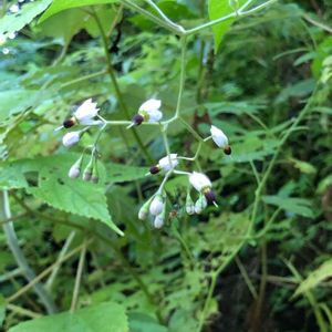 バトミントン🏸の羽のようなお花かなぁ ヒヨドリジョウゴ(鵯上戸)と教えていただきました。