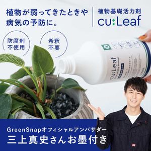 GreenSnapオフィシャルアンバサダー 三上真史さんも実感! GreenSnapオリジナル活力剤 cu:Leaf(キュリーフ) 様々なレビューもいただいており、 『3年くらい前からあるポニーテールが枯れかけていたので、キュリーフを購入し、届いてすぐ、かけてあげたら、次の日から元気になっていきました。購入して良かったです。』 『正直、半信半疑でした。しかし、元気がなかった斑点入りのモンステラに、新芽がでできたんです!感激しちゃいました。なので、2本目購入予定です。ありがとうございます!』 『即効性あり!そのままかけるだけで便利でした ガジュマルの水やりをうっかり忘れてしてしまい、一気にたくさんの葉が落ちてしまってガックリしていたところ、この商品を知り、試してみたところ、1回の使用で、10日後には新しい芽が2箇所から出ていました。3回の使用(約1ヶ月後)には新芽がどんどん成長してきてくれています。薄める手間などもなく、そのままかかるだけなので、簡単です。今後も、継続使用して、ガジュマルを丁寧に可愛がっていきたいと思います。』 などなど、嬉しいお声をいただいております🙌 ぜひ、冬越しアイテムとしてご使用してみませんか? GreenSnapSTOREで絶賛発売中です⭐️ ▼商品ページはこちら▼ https://greensnap.ink/3VxTXFo