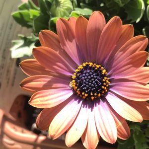 オステオスペルマム アキラ♡ 毎年お迎えするオステオさん💛 まずは黄色っぽいこの子を💛 もともとオステオスペルマムさんの花色は紫、白、ピンクが中心だったけどディモルフォセカさんとの交雑によって黄花やオレンジ花を咲かせるようになったそうです。『みんなの趣味の園芸』に載っていました! 私の好きなこの色はディモルフォセカさんのおかげだったのを知りました😊 美しくていつまでも見ていられます🥰💕