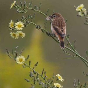 今日のお花 アキノノゲシ 無事越冬地に着いたかな ノビタキ 10月撮影