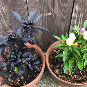 観賞用五色唐辛子の変化🌶 💜初めは、ほとんど紫色だけの一色💜 一ヶ月過ぎると、徐々にいろいろな色になり💚🧡❤️💛💜 とうとう昨日には、赤唐辛子じゃん‼️ 君は面白いねー🤣