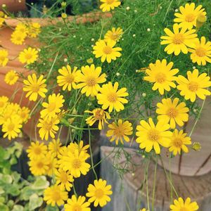 こんばんは☺️ 今日も一日お疲れさまでした🤗 季節は秋のお彼岸だと言うのに… 気温は30℃越えの暑さでした😥 お墓のお掃除・お墓参りと… 汗だくの一日でした💦が 今は網み戸から入る風はヒンヤリとして 鈴虫の声と相まって秋の夜を感じます🤭 ☘️ダールベルグデイジー☘️を 篭寄せしてみました♪😋
