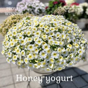 🌼 スーパーベル ハニーヨーグルト 🌼PW 1️⃣前回の投稿(5月末)から約3週間で2度目の満開です❣️ 花数も増えて葉っぱ🌱が見えないぐらい咲きました゚+.゚(´▽`人)゚+.゚エヘッ 2️⃣真上から📸 3️⃣前回の投稿(シルバーベリー)の真上からの写真を忘れたので…😅 ※12号の平鉢🪴で育ててます🙇