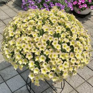 🌼 サフィニア アート とらネコ 🌼 SUNTORY.F 6回目の満開♪( ˊᵕˋ*و(و " 今年からハイポネックスの" フォスビットK " を施肥してます。 リン酸では無く亜リン酸の成分なので花付きがとても良いと思ってます!!ჱ̒ ー̀֊ー́ ) さらにハイポネックスの活力剤" ストレスブロック " を水遣りする際にかなり薄めてあげてます!! リキダスよりコスパ💰が良いです!! ご参考になれば…😅