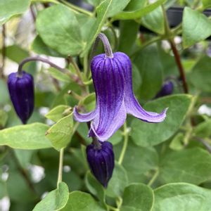 💐 クレマチス 花園 💐 母の日用の花の見切り品"花園"を3鉢(🪴🪴¥1000×2🪴¥500×1)レスキューしました🤭 クレマチス初心者🔰なので、枯れてしまった時用にと3鉢もお迎えしたのですが案外強く、仕事場のベランダで元気に育ってます👍 ※家族には内緒🤫で育ててます。 7号のロングスリット鉢で育ててます🪴 2️⃣テッセンも開花してます♪