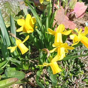 スイセン ティタティタ(テータテート) 第一号は昨年と同じくらいの日に咲きました。いくつかの種類を混在させているのですがやはりニホンスイセン?かな?は、葉は出るものの花は咲かない💦鉢植えなので毎年の植え替えがダメなのかな🤔難しい〜😫 ヒガンバナ科スイセン属