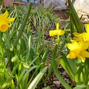 ミニスイセンが次々咲いてくれるので、切って飾ります💐 寒くなるというので❄️ローゼルの苗やまだまだ小さい野菜の苗たちはリビングに避難🌱