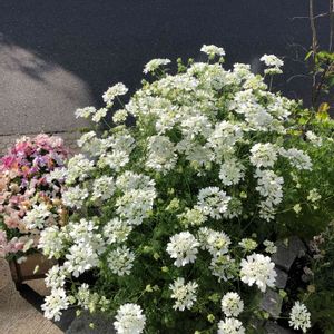 オルラヤ🤍こぼれ種から✨🌟 でも我が家の小さな庭では、撒きすぎたかな😅後ろにレイズドベット、高くしてラベンダーとか植えてるんだけど。。日が当たらない💧