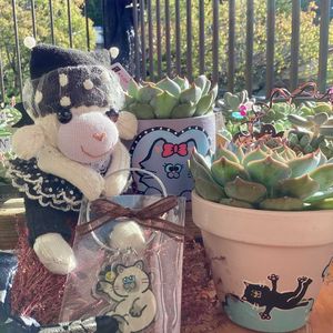 peanyatsの日🏷️ ハロウィン🏷️ ハロウィン月間🏷️ ありがたハッピー❤︎100均🏷️ コラージュして遊ぼ♡🏷️ などで投稿させて頂きます 今朝ネットを見ていて 黒猫の日とか 全英黒猫の日 ナショナル・ブラックキャット・デー の日であるという記事を読みました ハロウィンの直前に設定されており 黒猫が不吉の象徴とされること による虐待を防ぎ 里親探しを促進する目的と 実際に里親縁組の確率が低いため イギリス最大級の 動物愛護団体が制定したそうです 我が家も過去に 猫、犬、モルモットと 一緒に暮らしたことがありますが 申し訳ないですが 真っ黒な子は選びませんでした 不吉とは思っていないし むしろカッコいいと思うこともあるけど 表情が分からないからかな? ごめんなさいね〜🙏💦 今日は peanyats鉢のネコちゃんたちも こそっとハロウィン仕様に🎃❤︎ にゃづこちゃんのリメ缶に植えてある多肉には 立派な花芽が立ち上がっていました これは後で✂️しますね ワインレッドのバラという名前は 初めましてなんですが 同じような多肉での投稿も無さそうで 本当にこの名前で合ってるのかしら😅