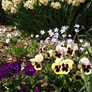 おはようございます☀️ 家の東側の花壇🌺 水仙、ビオラ、パンジー、ハナニラなどが満開です🎵