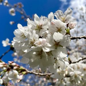 こんばんは🌆 四季咲きではない桜の木に お花がついているのを見つけ 嬉しくて、📸を向けました🌸