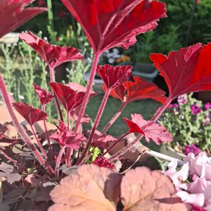 ヒューケラ♥️ 表の葉っぱより裏側の 葉っぱ🟥がとても綺麗です ♥️♥️🍀 ガーデンシクラメン💗も 二年目で元気です🫠