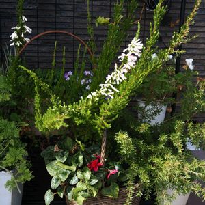 気温は少し高いけど爽やかな日になりそうです 1月に投稿していた寄せ植え ガーデンシクラメンとエリカが咲いています