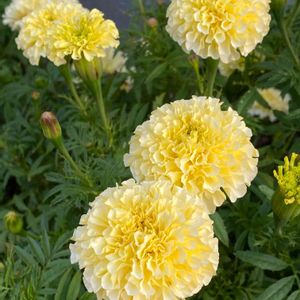 どんなに風が吹いても💕気にしないよ💕 マリーゴールド スィートクリームさん💕 大きな丸いお花💕とっても誇らしげに💕 今日も楽しんでいる💕爽やかさ満開ね💕