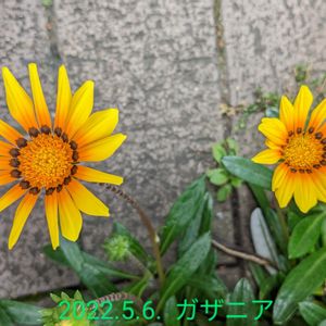 黄色のガザニア 駅前のバス停留所そばの花壇。 2022年5月6日撮影