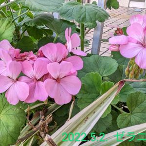 ピンク色のゼラニウム 郵便局の付近で咲いていました。 2022年5月2日撮影
