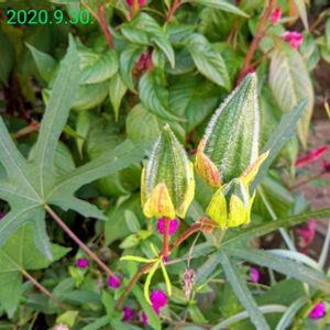 此方の蕾は、トロロアオイ でしょうかね❓❓ ニューギニアインパチェンスや センニチコウの蕾も写っています。 昨年撮影した写真ですが、 調べる事を忘れていました😰 2020年9月30日撮影