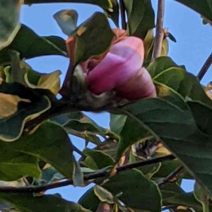 この時期に モクレン (木蓮) 咲くのですね🤔 近所の花壇ですが… でもね、翌日には茶色くなって しぼんでいる様です。 やはり、気温🌡暑いのか 合わない様にも思えます。 2021年9月27日撮影