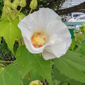 本日のフヨウ (芙蓉) 白っぽい花色です。 敷地内にて 2021年9月29日撮影