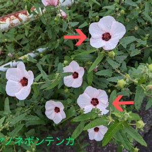 ヤノネボンテンカの花 ➔印の花の開き方が逆なのですわぁ😁😜
