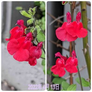 サルビア・ミクロフィラ らしいです。 診療所近くの花壇にて。 2022年4月13日撮影