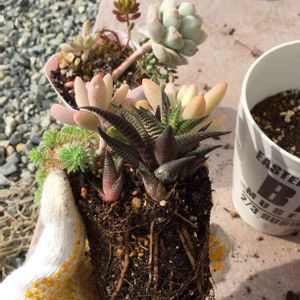 もう1つの鉢は、下から見覚えのある根っこが! こんな立派な根っこの持ち主は硬ハオしかいない! 仕方ない、植え替えるか…と思ったら、子株が…! 硬ハオ系はすぐ子株ができるね! 根っこも立派で生命力が強いな〜 この子は1人トゲトゲしくてお隣さんが痛そうだったので別鉢に植えました♡