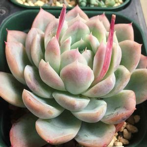 エレガンス系 この種類はほんといっぱいいる😁 ラズベリーアイスもカリビアンブルーも子株がたくさん出てきてます🎶 前にもアップしたレモンベリー。お迎えしたときの名前がレモンベリーだったけど多分レモンベリーと何かの交配苗では?って思ってます😅最近ピンクの縁がさらに濃くなって可愛くなりました💕