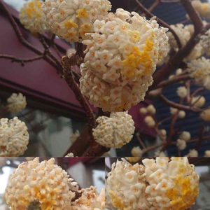 ビタミンカラー💛💛💛 このミツマタ、よく見るのよりこんもり咲き。 観賞用に交配しているらしい。